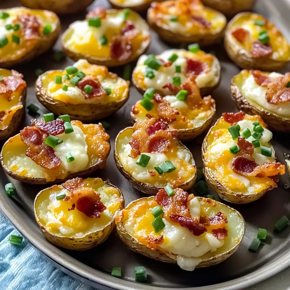 Die Gäste sind gerade am Tisch versammelt, als der erste Biss in die leckeren Mini-Kartoffelhaut für ein kollektives „Mmmh“ sorgt. Diese kleinen Köstlichkeiten sind nicht nur der perfekte Party-Appetizer, sondern auch unglaublich einfach zuzubereiten. Mit ihrer knusprigen Textur, dem schmelzenden Käse und dem herzhaften Bacon sind sie der Hit auf jedem Buffet. Und das Beste daran? Sie können im Voraus vorbereitet werden, sodass Sie die Zeit mit Ihren Freunden genießen können, anstatt stundenlang in der Küche zu stehen. Neugierig, wie Sie diese knusprigen Häppchen selbst zaubern können? Lassen Sie uns gemeinsam in dieses Rezept eintauchen!