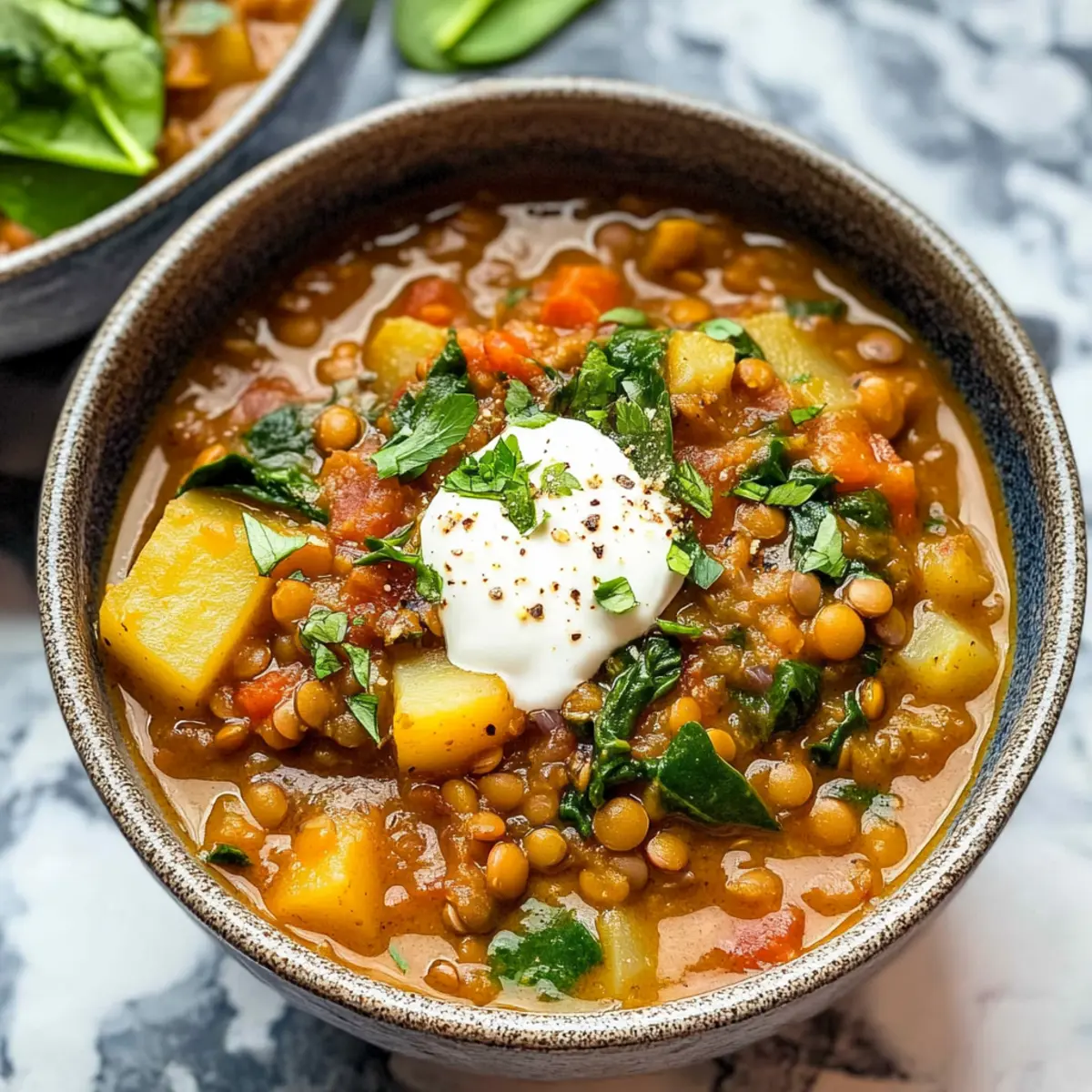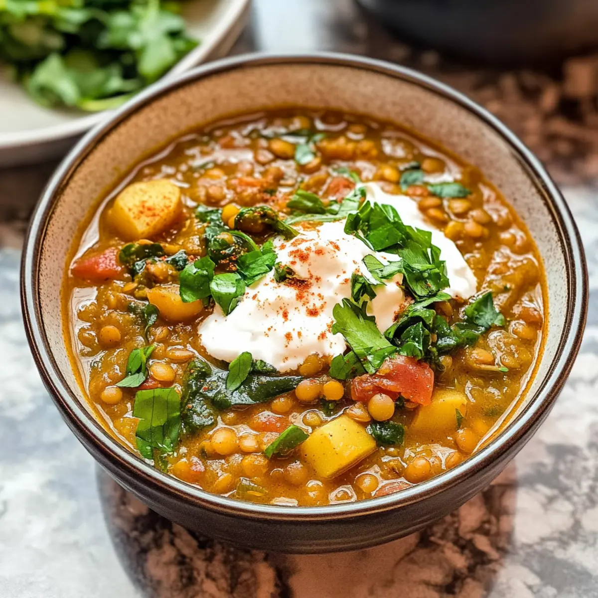 - Kräuter-Joghurt: Ein Klecks pflanzlicher Joghurt mit frischen Kräutern verleiht der Suppe eine cremige Frische, die die Gewürze wunderbar balanciert.