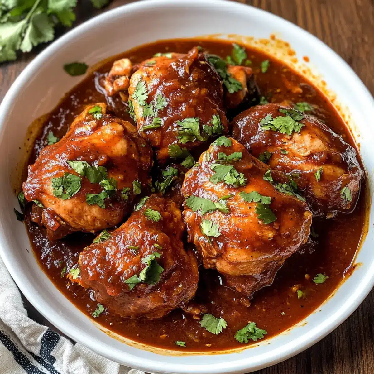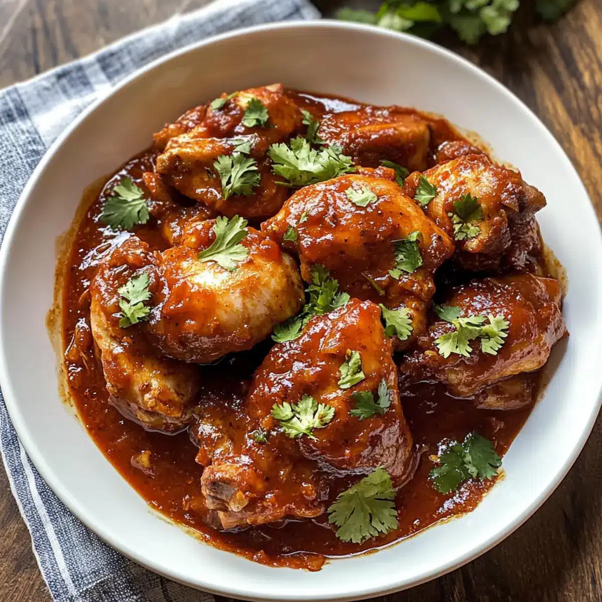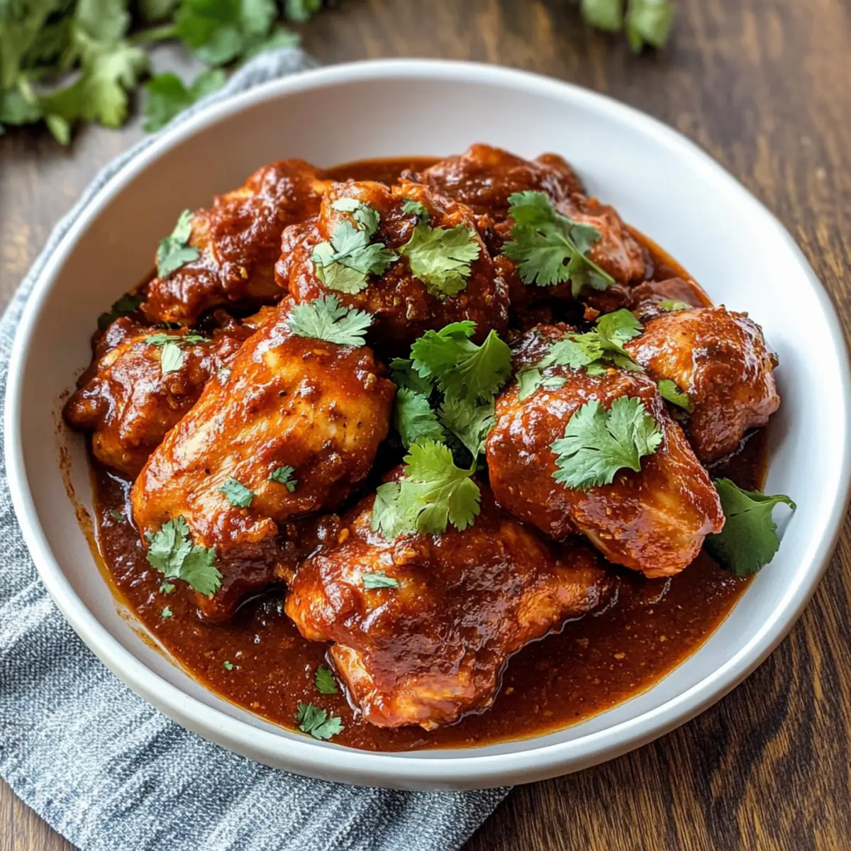 - Serviere das Hühnchen mit frisch gehacktem Koriander und optional mit Reis oder Tortillas.