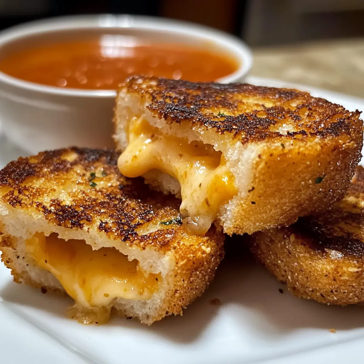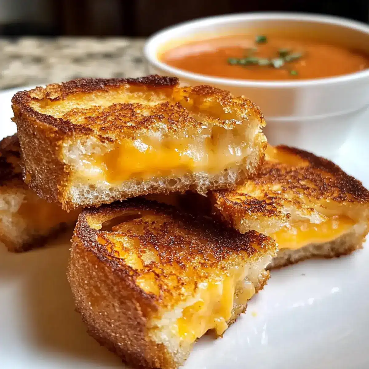 Schneide die gegrillten Sandwiches sorgsam in Streifen oder Stücke, die ideal zum Dippen sind. Achte darauf, die Teile gleichmäßig zu schneiden, damit sie gut in die Tomatensuppe passen. Deine Mini Käsebrötchen Dipper sind jetzt bereit zum Genießen!