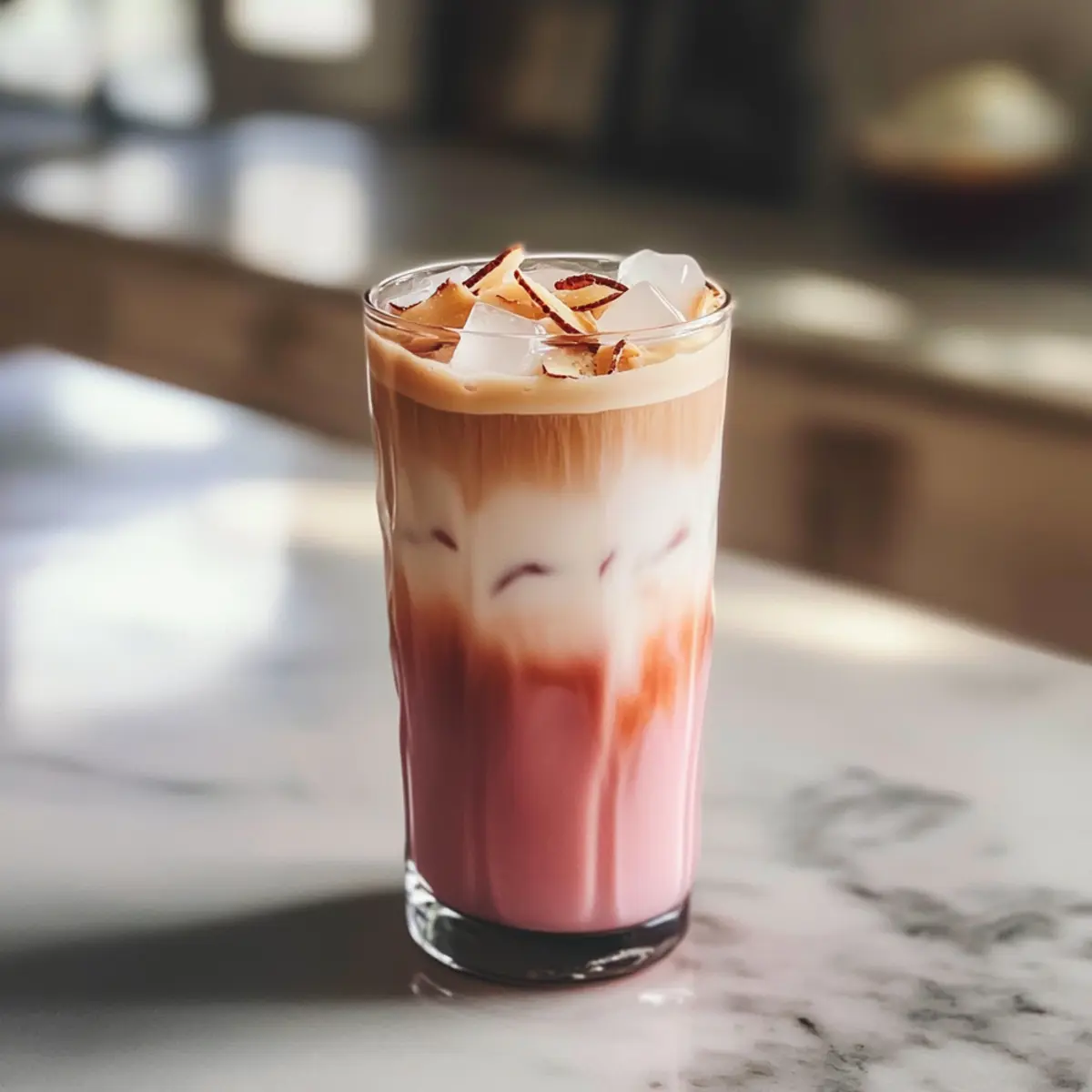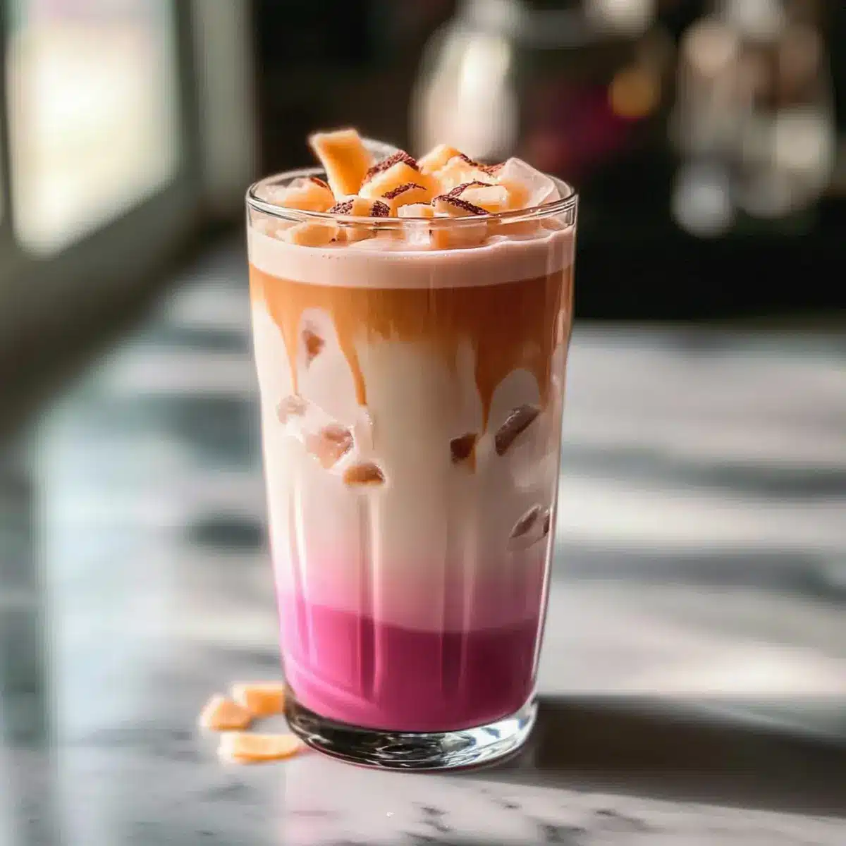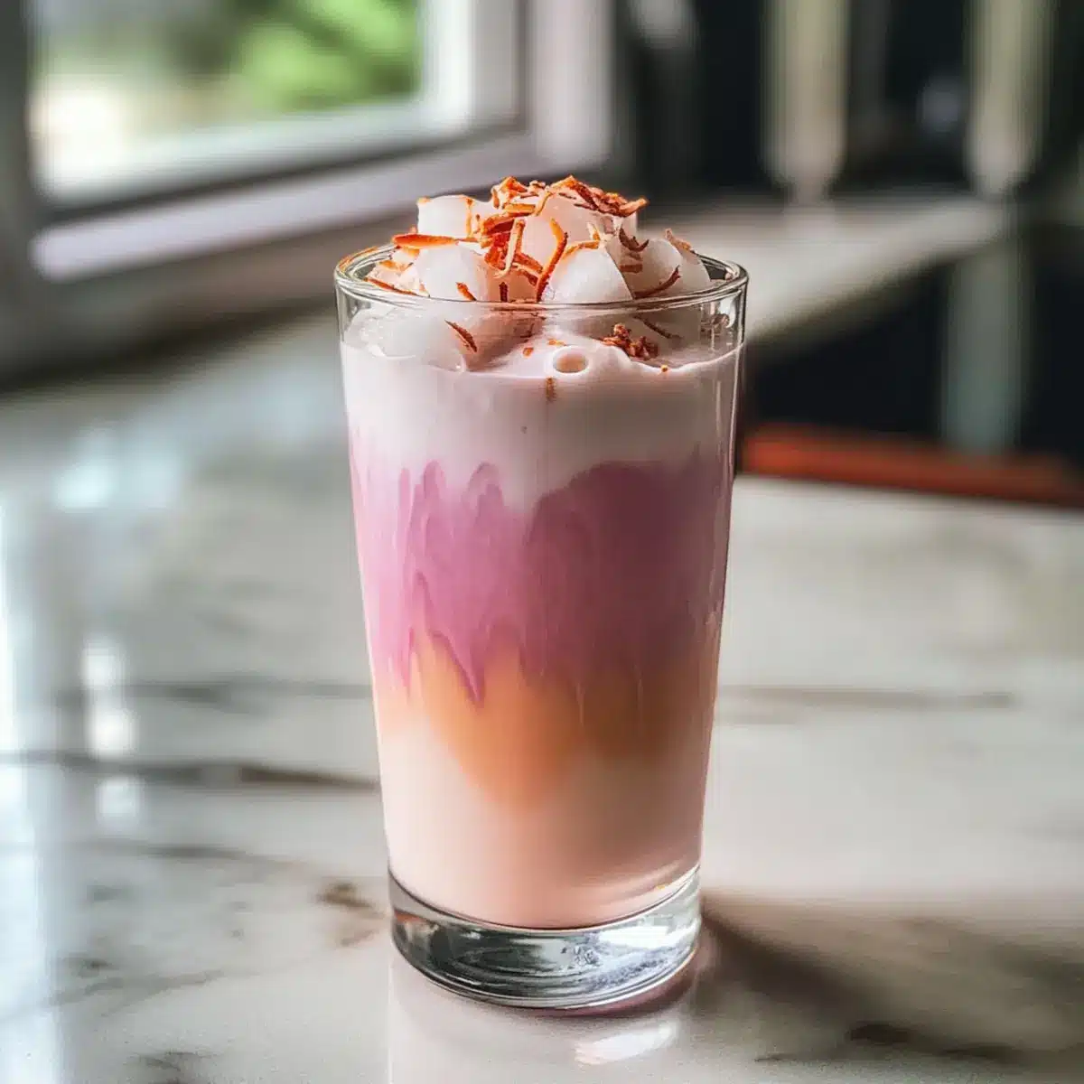Rosa Kokosnuss Eiskaffee mit einem Twist