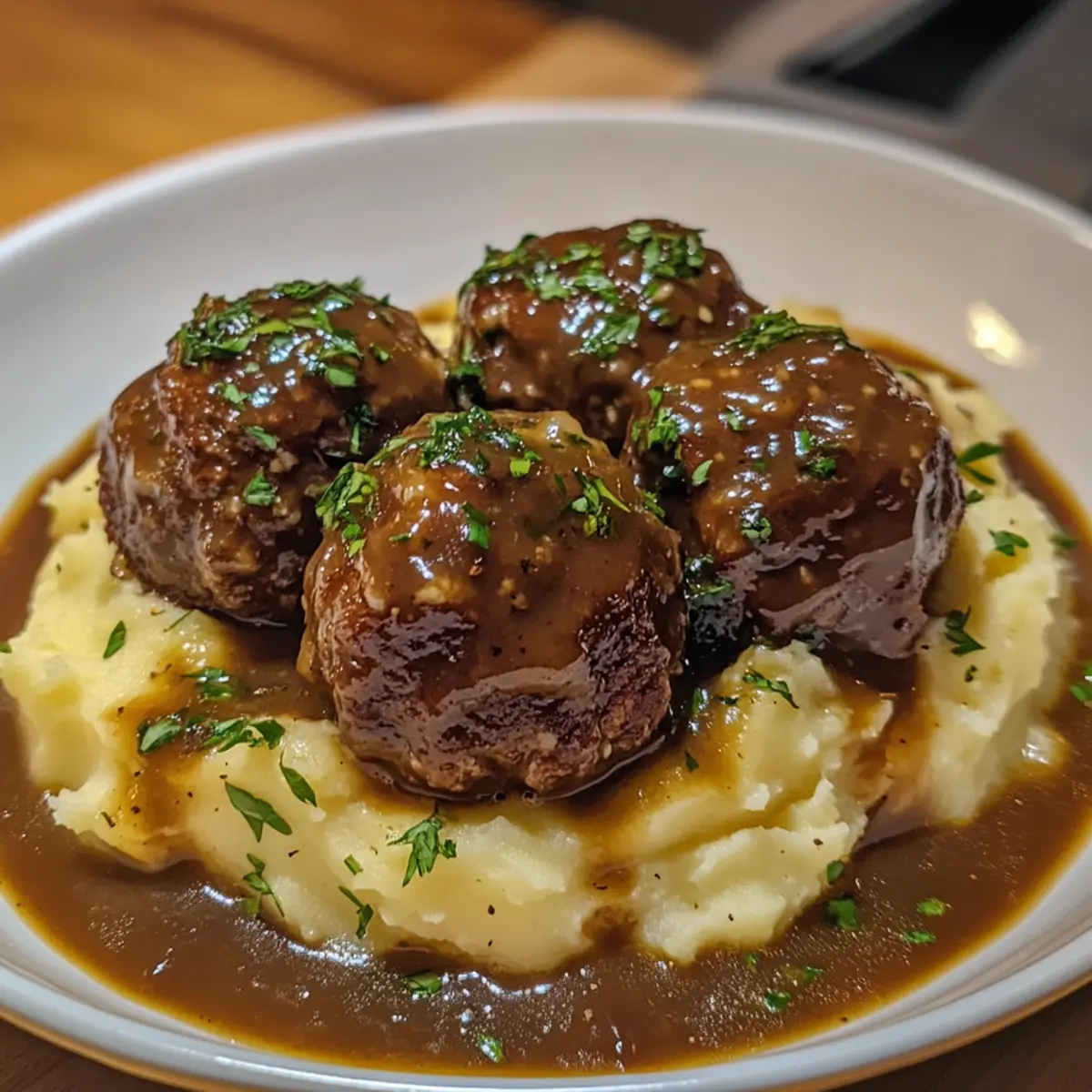 Salisbury Steak Fleischbällchen mit Kartoffelpüree