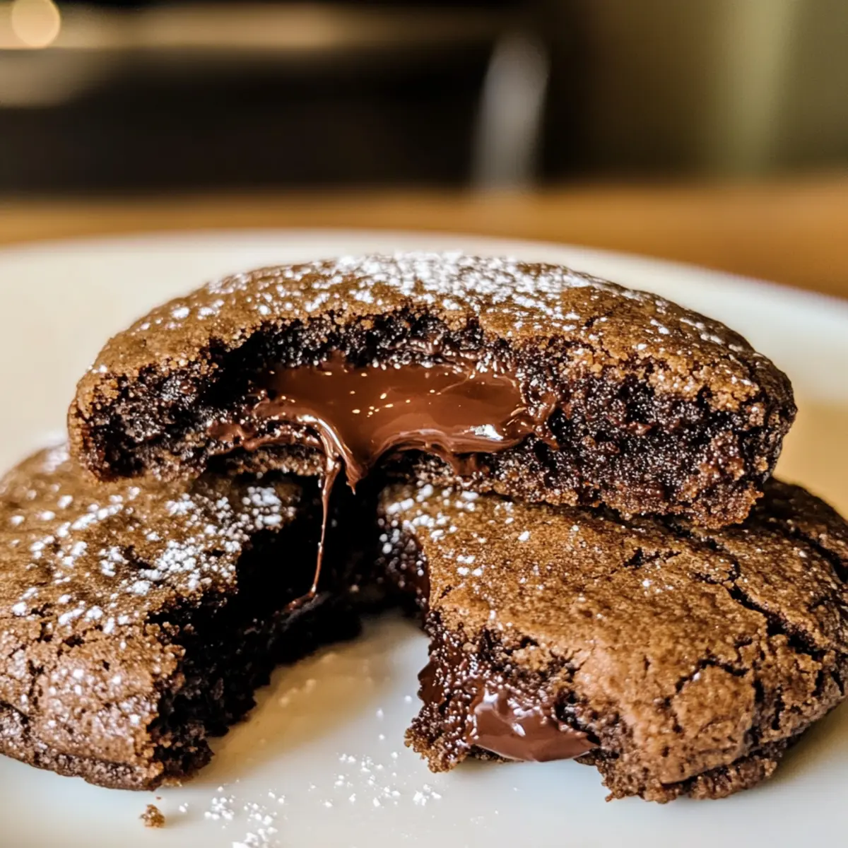 Einzigartiger Genuss: Diese Schokoladenlava-Kekse vereinen den perfekten Schokoladengeschmack mit einer cremigen Ganache, die beim Reinbeißen verführerisch fließt.