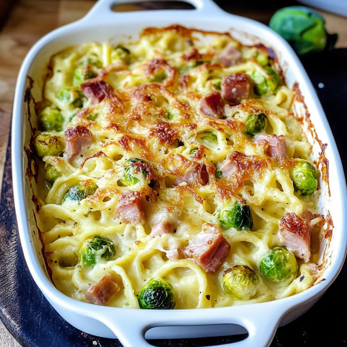 Saisonale Gemüsesorten: Ersetze den Rosenkohl durch Brokkoli oder Kürbis für eine neue Geschmackskombination, die perfekt zur Jahreszeit passt. So wird dieser Auflauf noch bunter und gesünder!