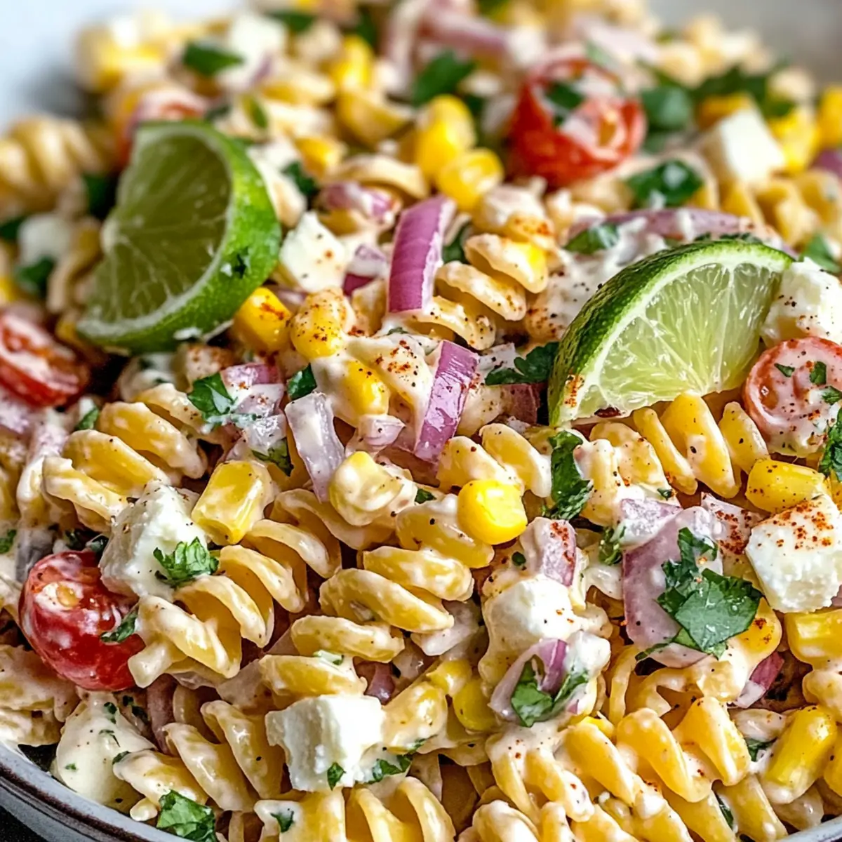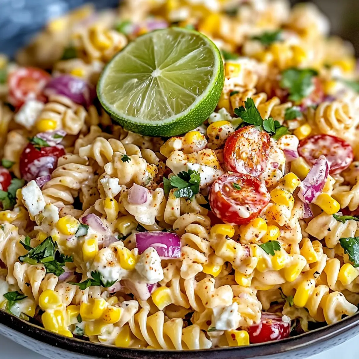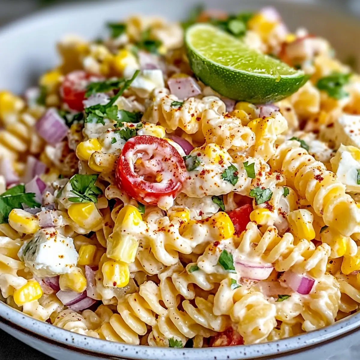 Beliebtheit garantieren: Dieser Straßenmais Nudelsalat wird Ihre Gäste begeistern und als wahrer Hit auf jeder Sommerfeier wahrgenommen.