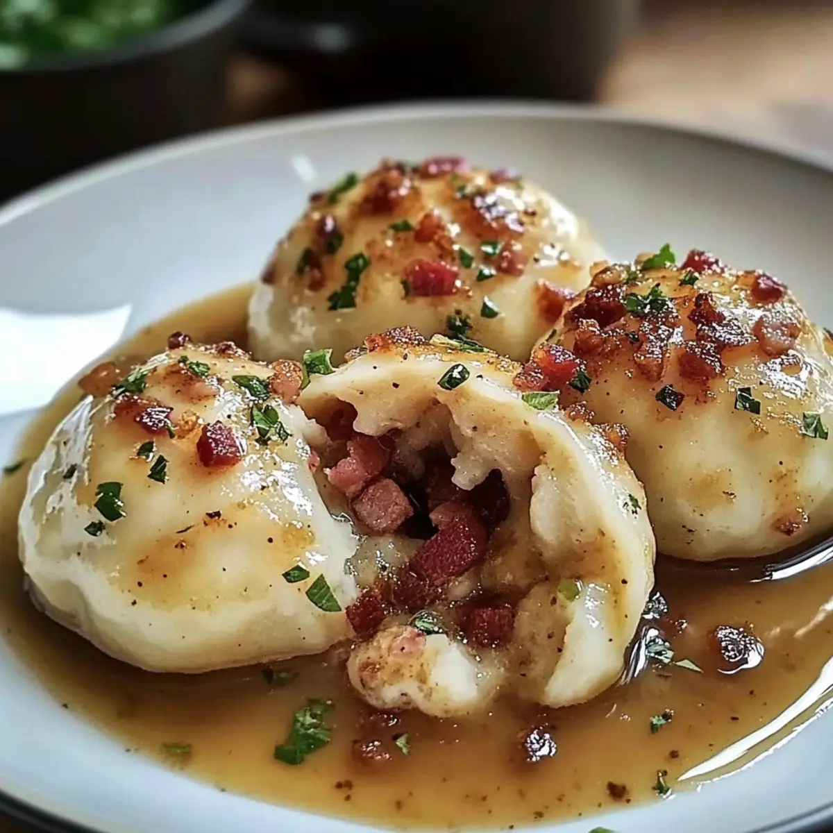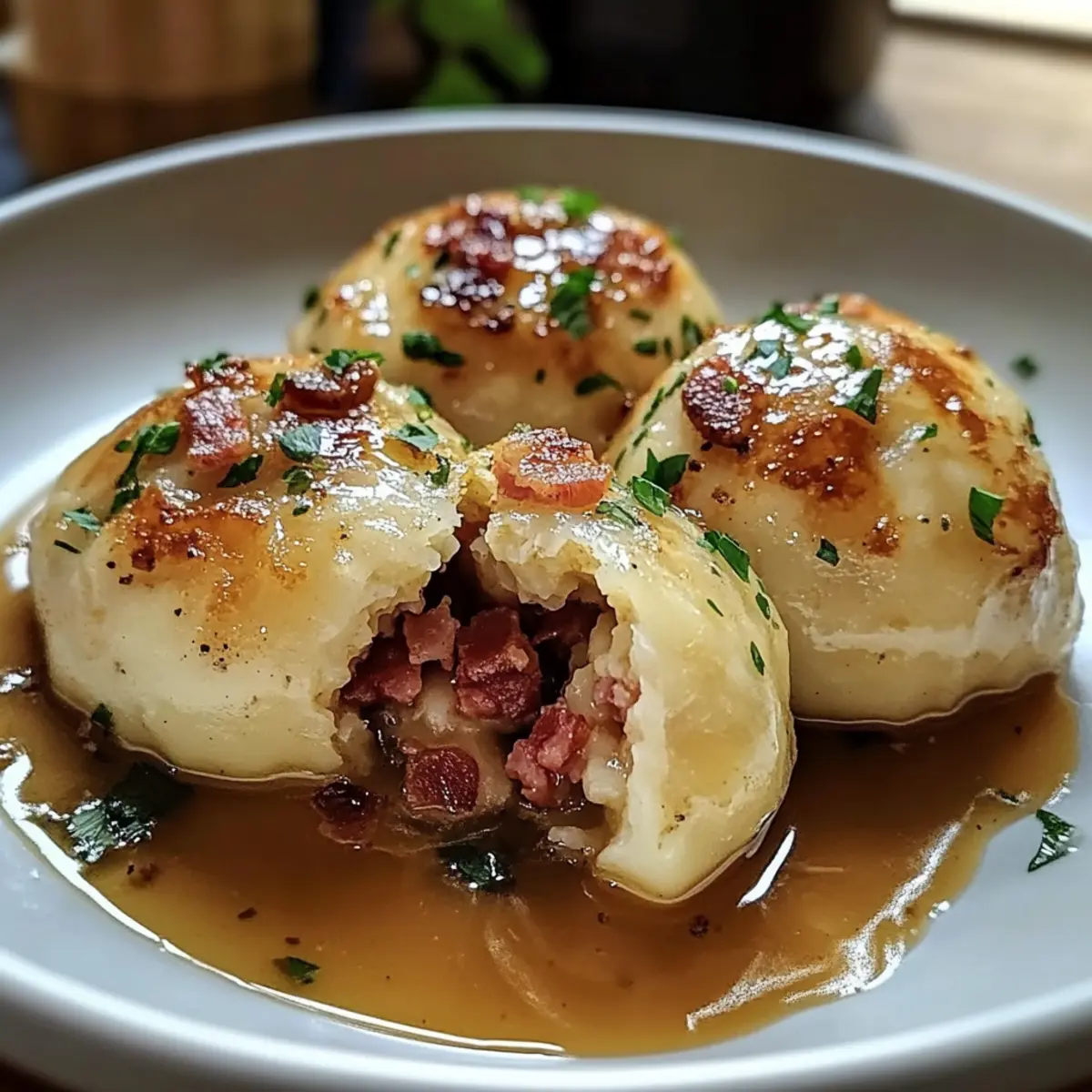 - Vegetarische Option: Ersetze den Speck durch sautierte Champignons, um eine herzhaft-vegetarische Version zu kreieren. Der Umami-Geschmack der Pilze verleiht den Knödeln eine neue Tiefe.