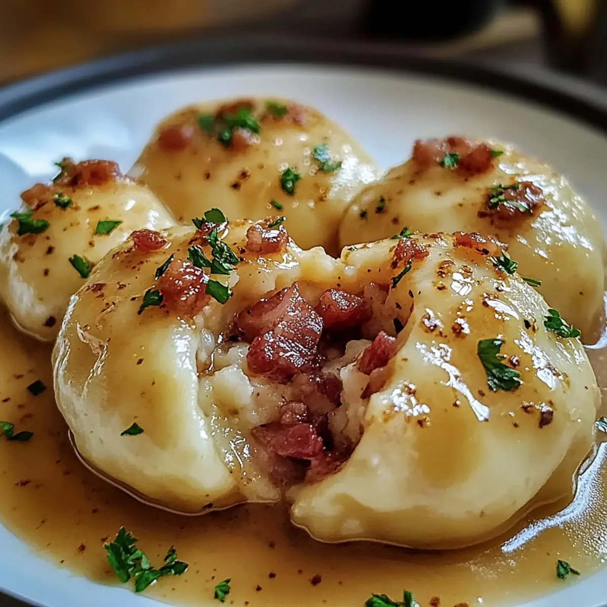 - Sahnesauce (Cream Sauce) – Eine cremige Sauce passt toll zu den Knödeln und ein wenig extra Komfort.