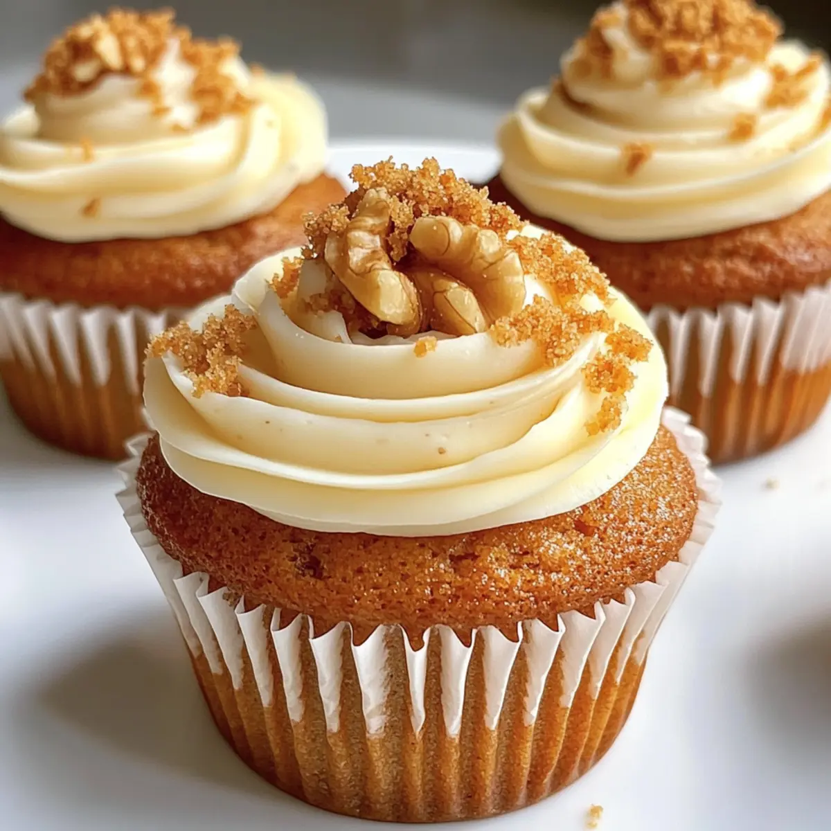 Perfekte Texturen: Die Kombination aus fluffigem Cupcake, cremigem Frosting und knusprigem Walnuss-Crumble sorgt für ein genussvolles Erlebnis in jedem Biss.