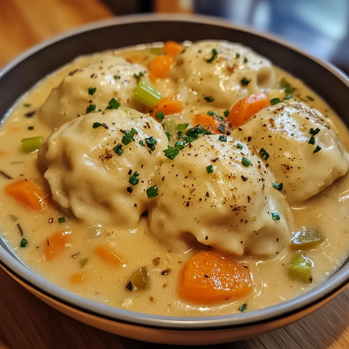 Nehme die Knödel vorsichtig aus dem Topf, wenn sie fest sind. Rühre dann die Kokosmilch unter die Brühe, um der Mischung zusätzliche Cremigkeit zu verleihen. Diese letzte Berührung macht deine Vegane Hähnchen und Knödel noch schmackhafter und unwiderstehlich!