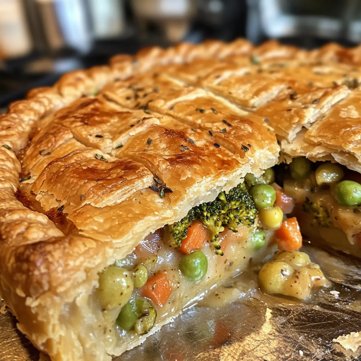 Ihr köstliches veganes Gemüsepastete bleibt im Kühlschrank für 3-4 Tage frisch. Lagern Sie es am besten in einem luftdicht verschlossenen Behälter, um die Knusprigkeit der Kruste zu bewahren. Wenn Sie einen Teil in den Kühlschrank stellen, lassen Sie ihn abkühlen, bevor Sie ihn abdecken.