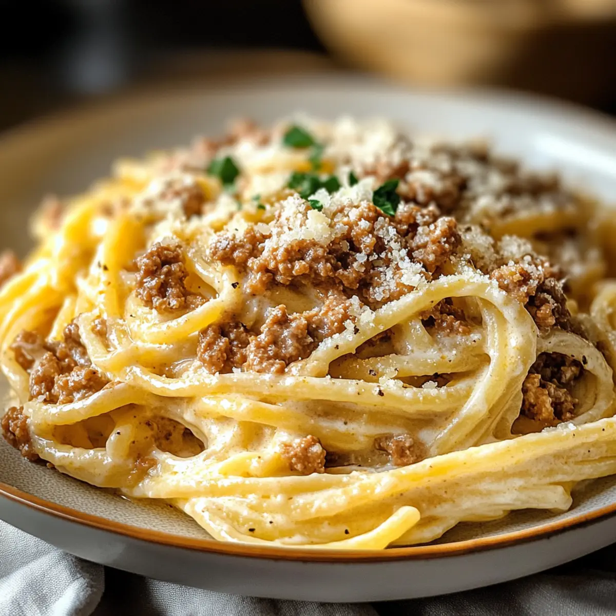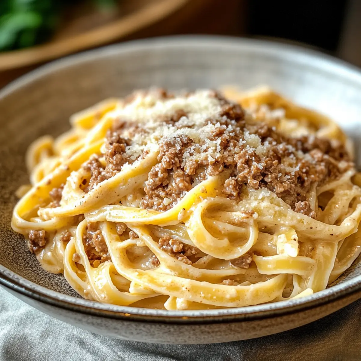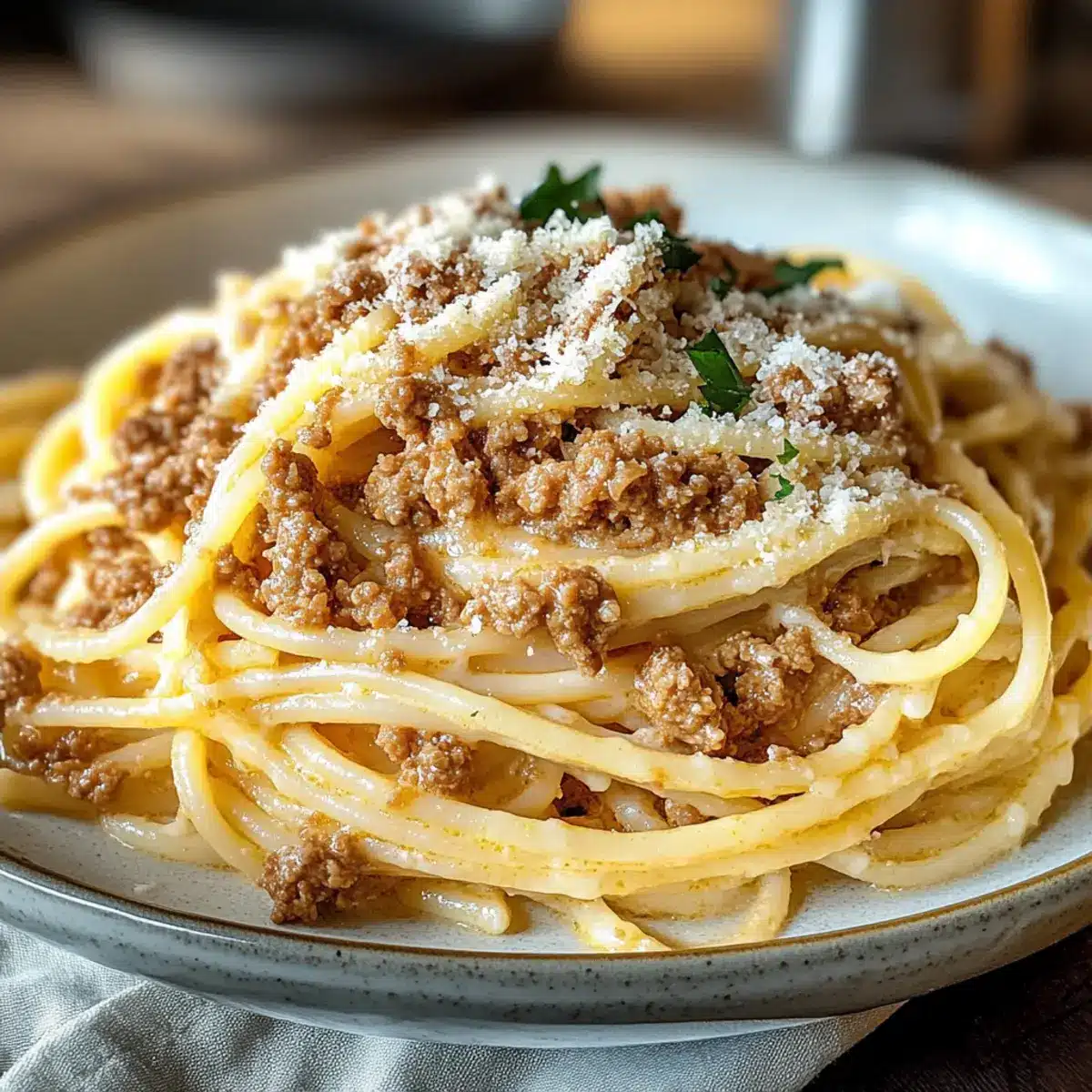 Einzigartiger Geschmack: Die weiße Bolognese-Sauce überzeugt mit einer raffinierten Kombination aus verschiedenen Fleischsorten und einer cremigen Textur, die mit Parmesan verfeinert wird.