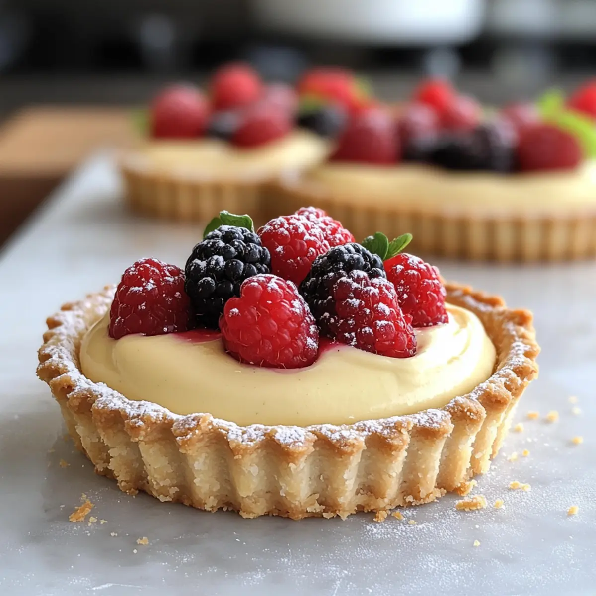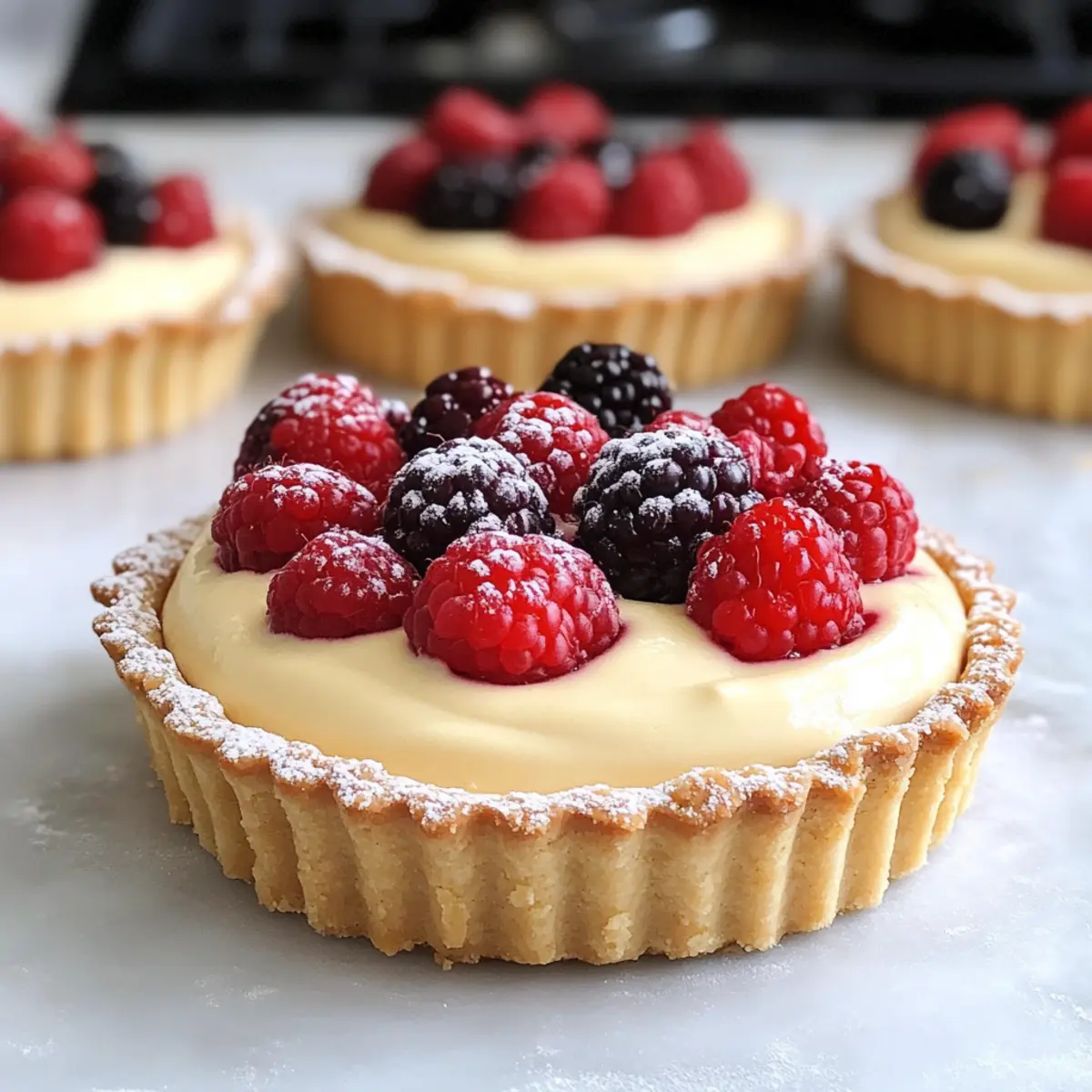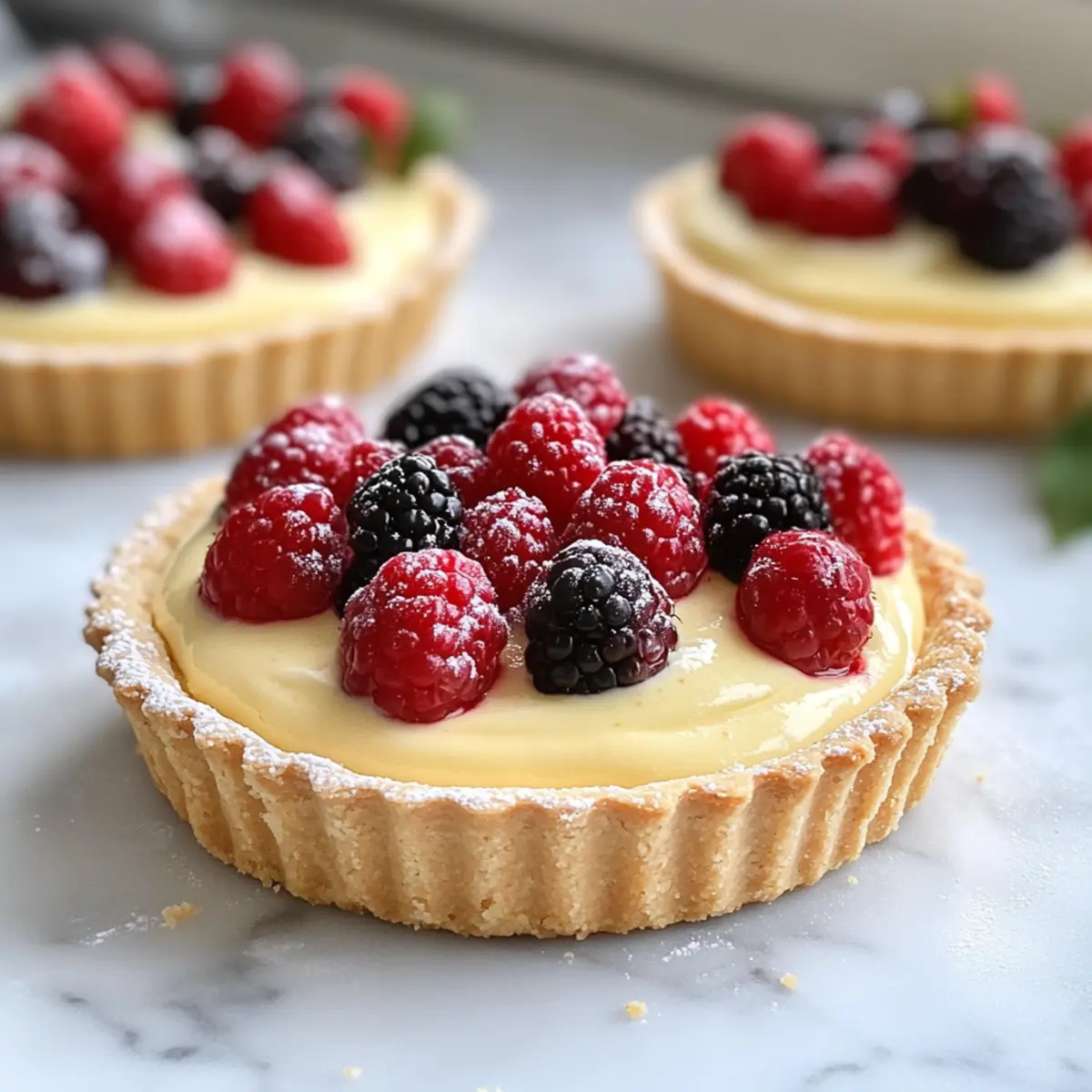 Setze auf eine Mischung aus roten und blauen Beeren für ein Pflegeleichtes Dessert. Diese fruchtigen Akzente bringen die Aromen der Tarte perfekt zur Geltung. -