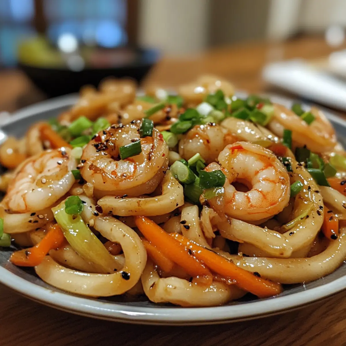 Serviere die Yaki Udon mit Garnelen heiß, garniert mit frischen, gehackten Frühlingszwiebeln für einen zusätzlichen Crunch. Genieße dieses köstliche und schnelle Gericht, das nicht nur deine Geschmacksnerven erfreut, sondern auch die Seele wärmt!