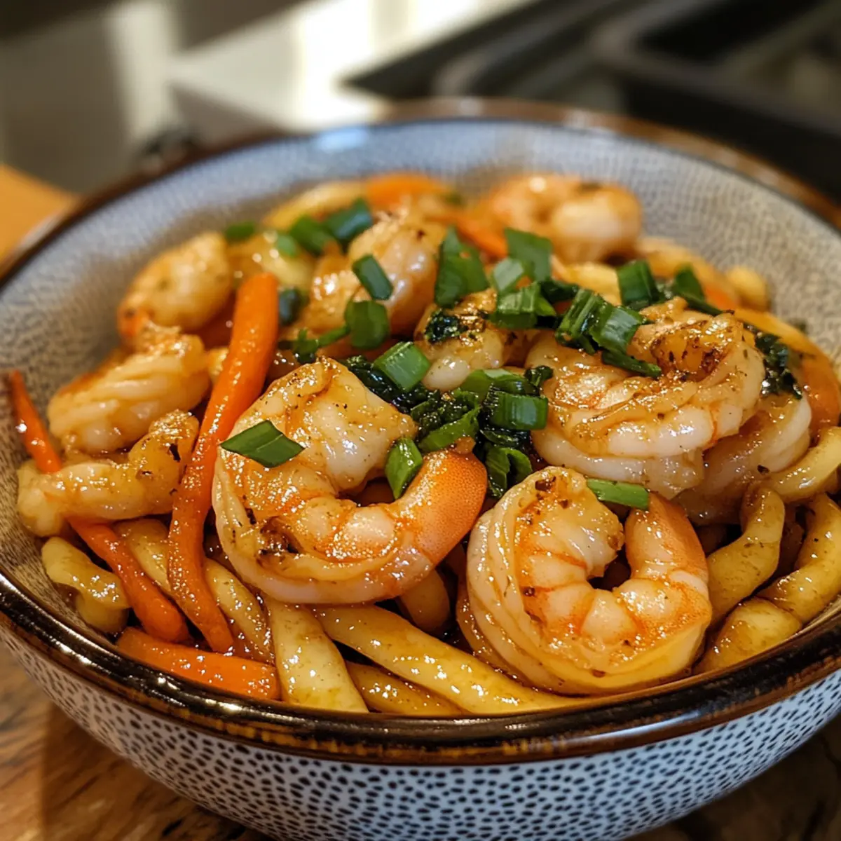 Umami-Explosion: Die Kombination aus frischen Garnelen, knackigem Gemüse und würziger Sojasauce sorgt für einen würzigen Geschmack, der deine Geschmacksknospen verzaubert.