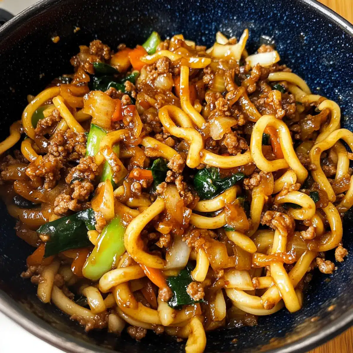 Die Yaki Udon-Nudeln Pfanne eignet sich hervorragend für die Vorbereitung im Voraus! Du kannst die Sauce bis zu 24 Stunden im Voraus zubereiten und im Kühlschrank aufbewahren, um die Aromen noch intensiver zu machen. Auch das Gemüse kann bereits geschnitten und in einem luftdichten Behälter für 2-3 Tage im Kühlschrank gelagert werden, um deinen Küchenaufwand zu minimieren. Wenn du bereit bist zu kochen, erhitzt du einfach etwas Erdnussöl, brätst das Hackfleisch zusammen mit der vorbereiteten Sauce an und fügst dann das Gemüse und die vorgekochten Udon-Nudeln hinzu. So erhältst du eine köstliche Yaki Udon-Nudeln Pfanne in nur wenigen Minuten – perfekt für stressige Wochentage!