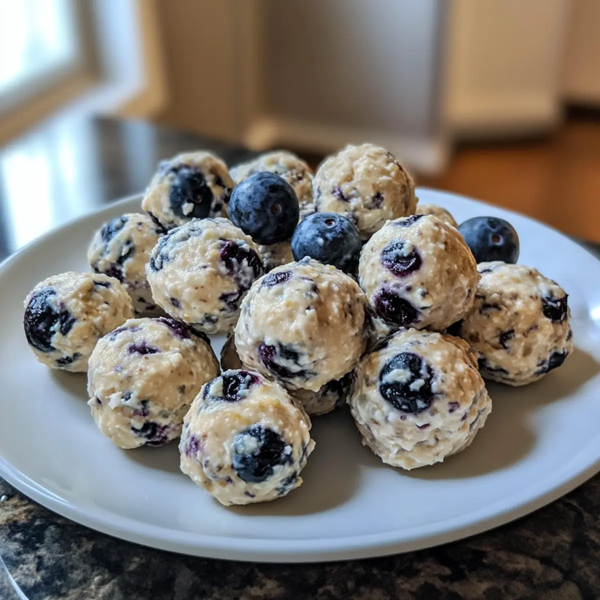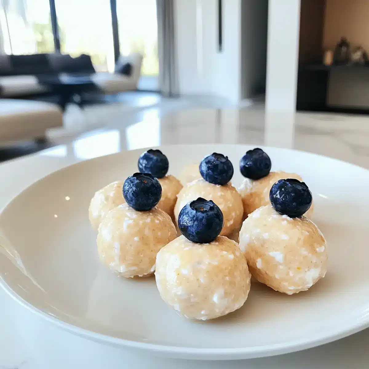 Zitronen-Blaubeer-Hüttenkäse Bites für unterwegs