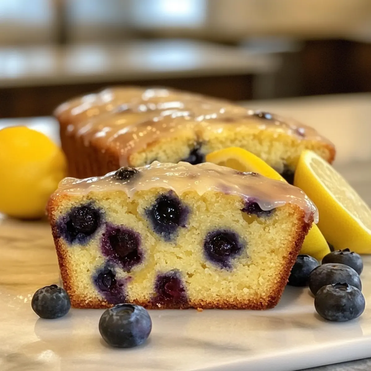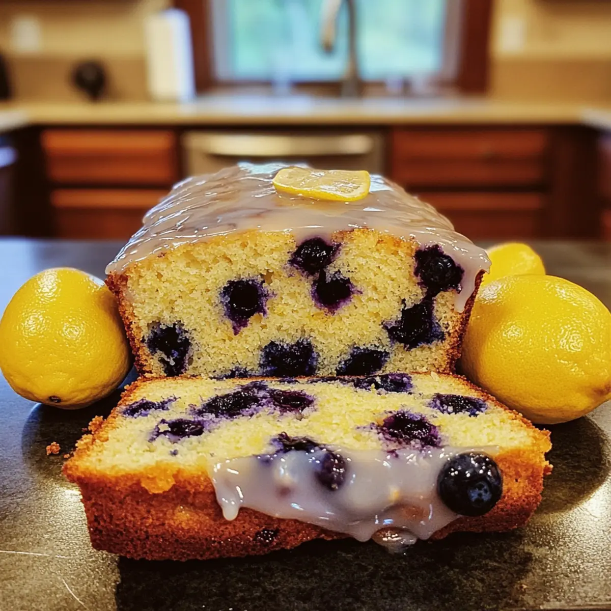 Zitronen-Blaubeer-Laib mit Zitronenglasur geniessen